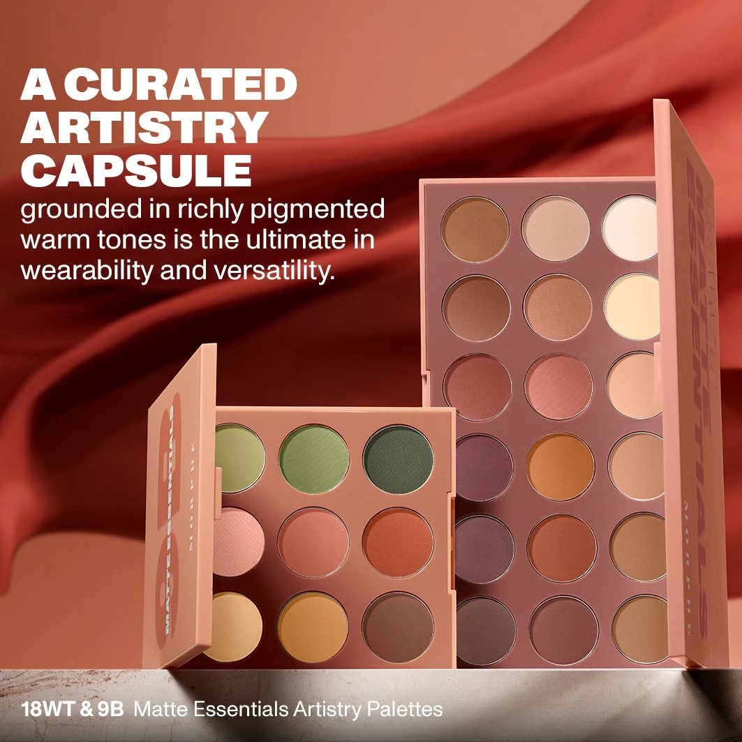 Moeiteloos. Tijdloos. Grenzeloos. Je onmisbare artistieke garderobe is binnen. Deze zorgvuldig samengestelde capsule bevat 18 warme, matte tinten die je prachtig in laagjes kunt aanbrengen en blenden voor oneindig veelzijdige, dagelijkse looks. Vul hem aan met het Morphe artistry-palet 9B Matte Essentials voor nog gedurfdere effecten.